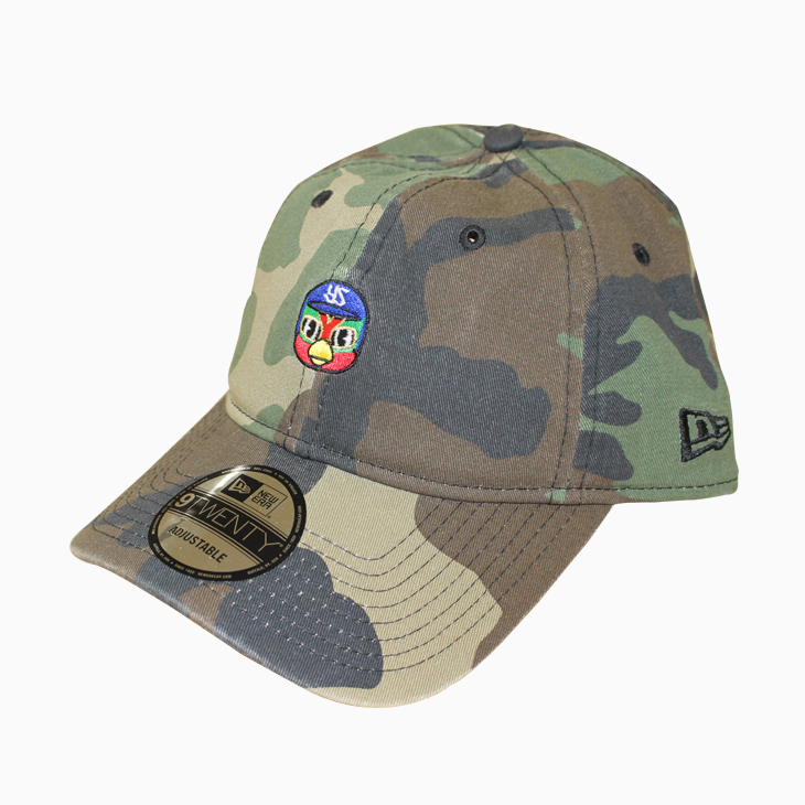 つば九郎を立体的に表現するためにサガラ刺繍を施したキャップ。